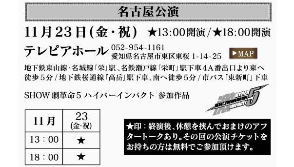 【名古屋公演】11月23日(金・祝) 13時 / 18時