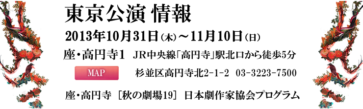 ■座・高円寺チケットボックス(月曜定休)  TEL:03-3223-7300( 10~18時) / 窓口( 10時~19時)