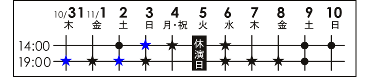 ★印の回は終演後、休憩を挟んで、15分程度のアフタートークあり。その回の公演チケットをお持ちの方は無料でご参加頂けます。印アフタートーク追加(10/15) >>アフタートーク情報(10/15追加)詳細はこちら