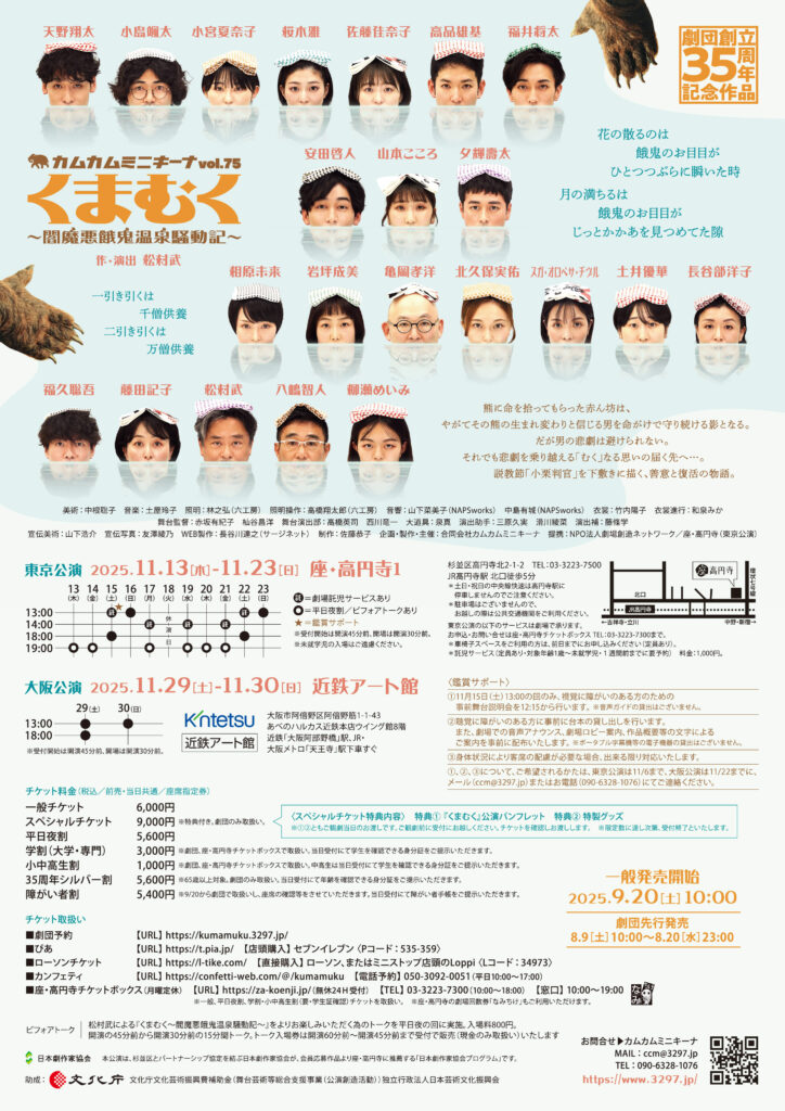 ※劇団、座・高円寺チケットボックスで取扱い。当日受付にて学生を確認できる身分証をご提示いただきます。