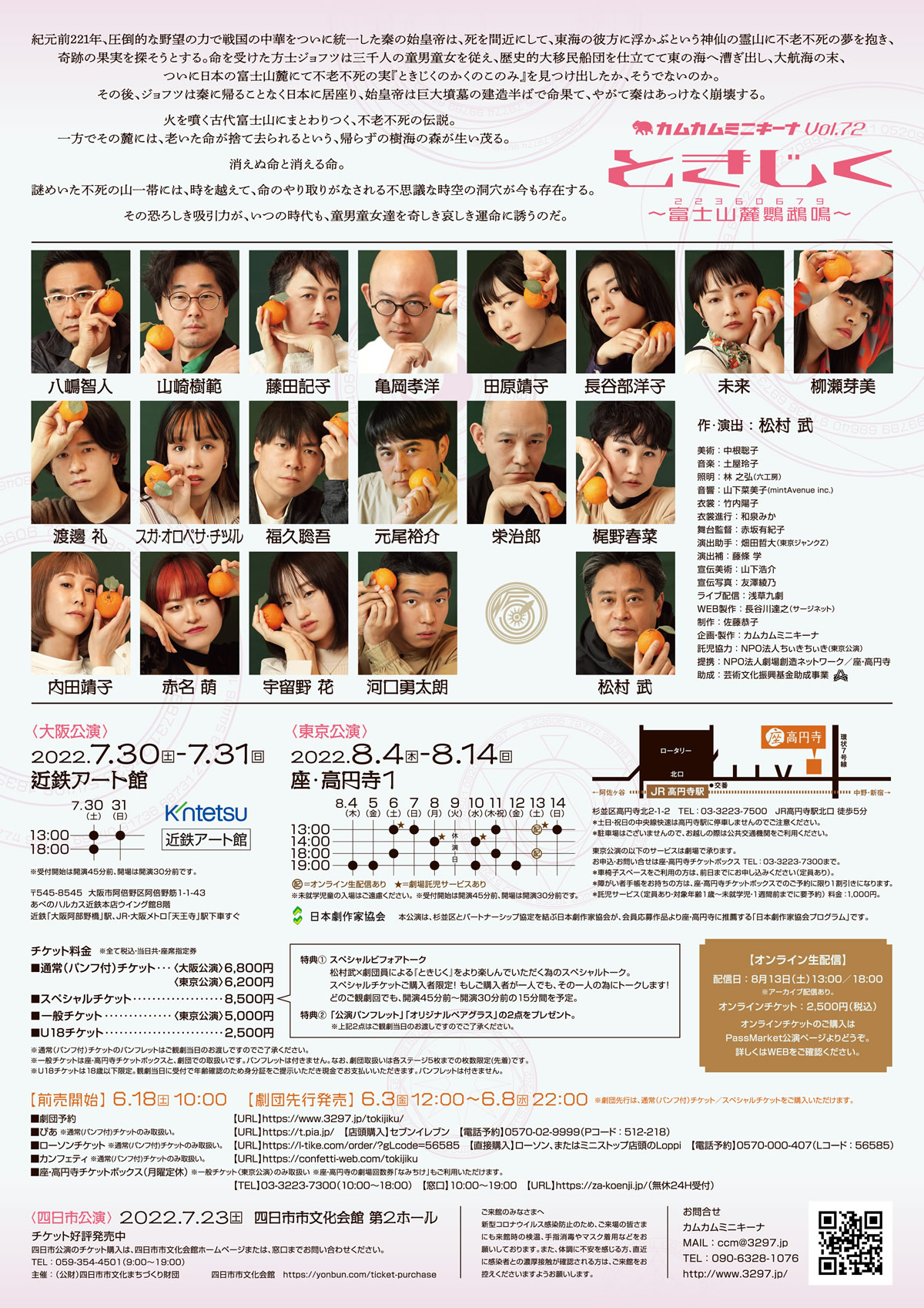 ※『ときじく~富士山麓鸚鵡鳴~』チケット取扱いプレイガイドは、ぴあ/ローソンチケット/カンフェティです。